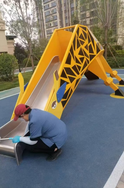 长颈鹿不锈钢滑梯采用304不锈钢材质