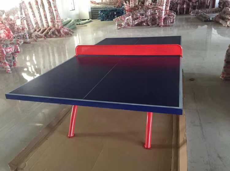 河南客户定制的室外乒乓球台50副已经生产完成,下道工序,包装出货!以下是本公司所生产的室外乒乓球台及球台的腿子,链接,网架喷塑之后的实拍图